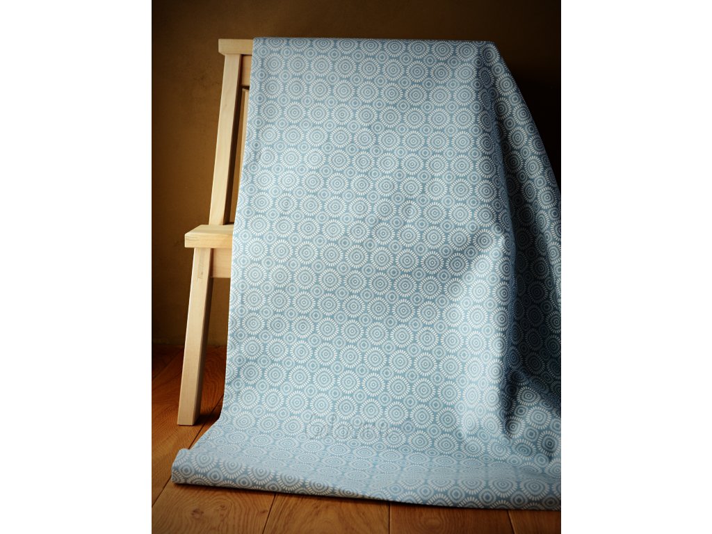 Plátno vyšší gramáže vyrobené ze 100% bio bavlny s krásným vzorem. Výborně se bude hodit na závěsy a potahy na polštářky.