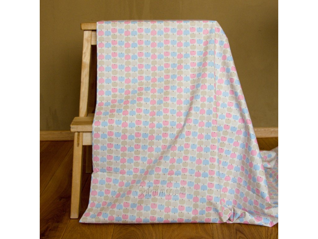 Krásný bio bavlněný popelín se vzorem jablíček se bude skvěle hodit na halenky, šaty a různé dekorace. Popelín je látka s hustou plátnovou vazbou, je pěkně splývavý, v létě příjemně chladivý.