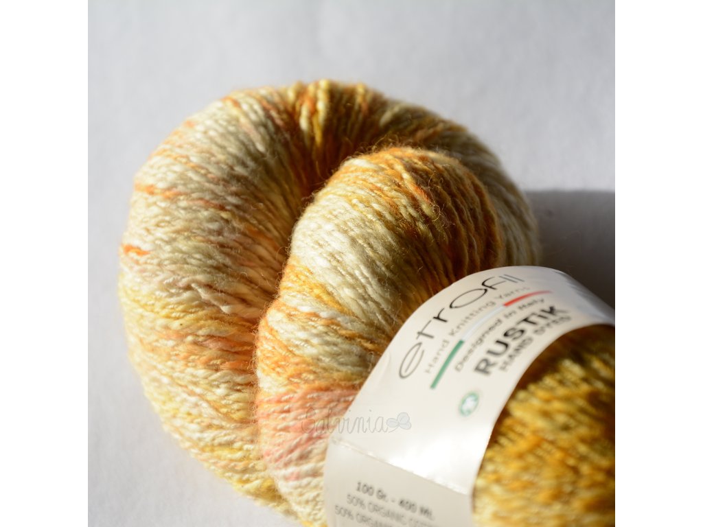 Ručně barvená příze složená z 50% organické bavlny a 50% organické merino vlny. Výborně se hodí na výrobu svetrů, šál, rukavic a čepic.