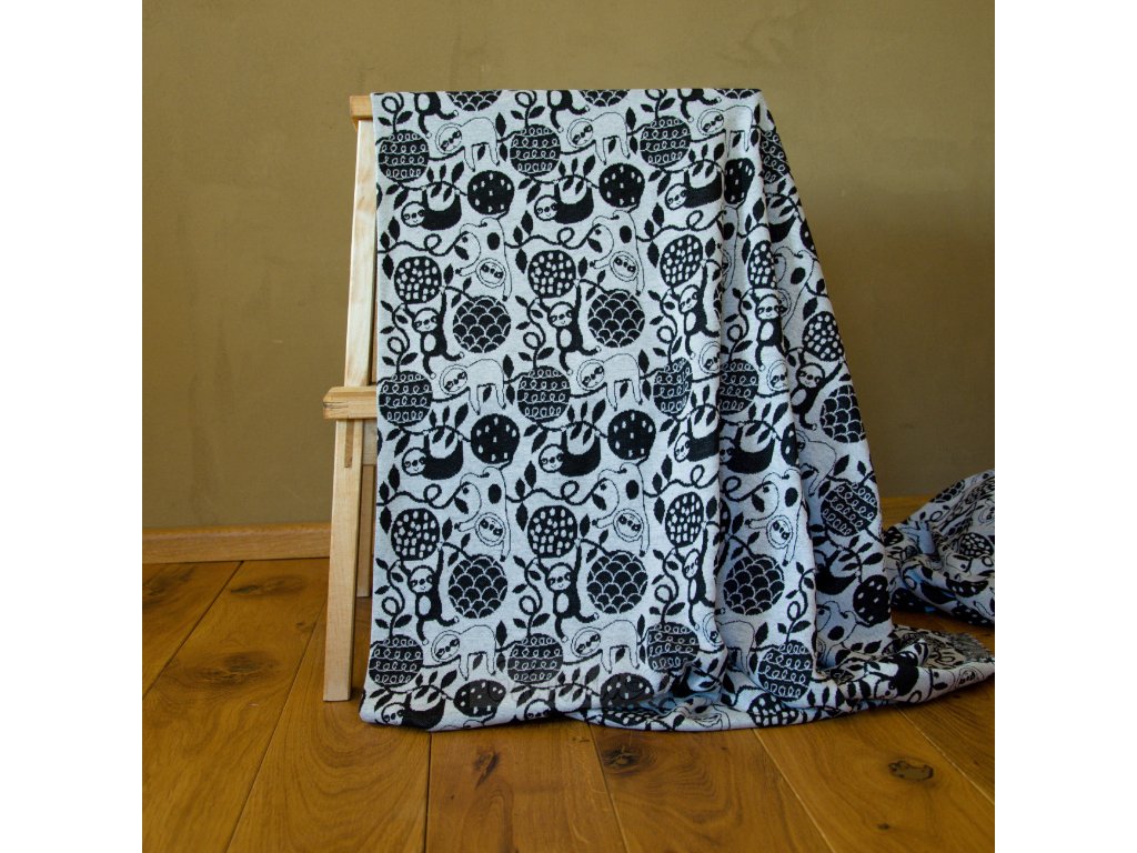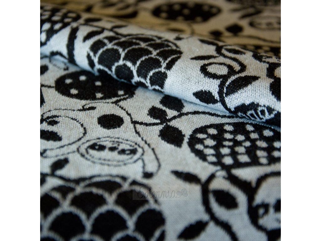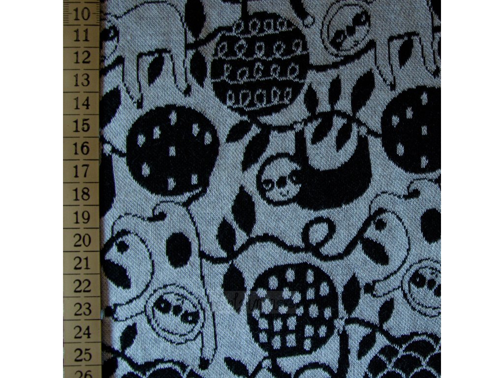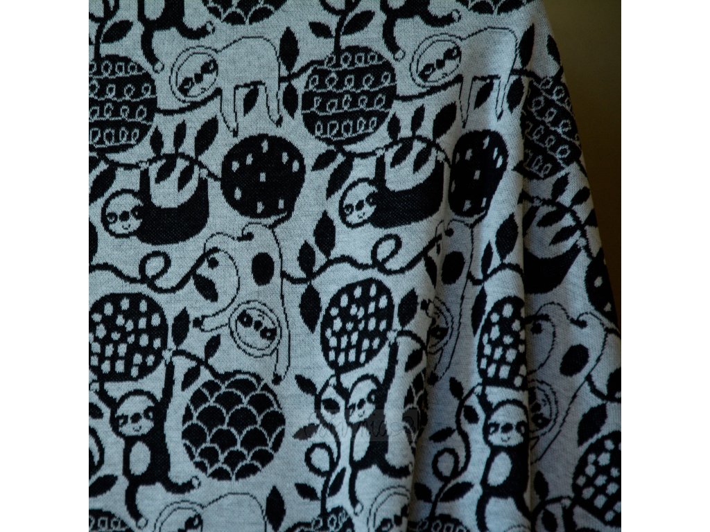 Tento krásný designový úplet můžete využít na cokoliv Vás napadne od triček a halenek až po krásné originální čepice a nákrčníky. Úplet má krásný žakárový vzor s motivem lenochoda. Vyrábí se z barevných přízí, a proto u žakáru nedochází k vymývání barvy při praní a dlouho Vám vydrží krásný. Látka je na dotek velmi jemná a příjemná.